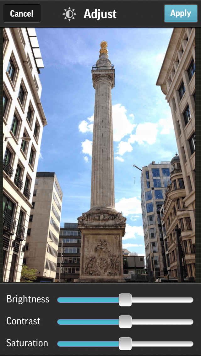 Apart from this special effect, Tadaa 3D also gives you a set of editing tools (Brightness, Contrast and Saturation), a set of Crop/Rotate tools, and of course a set of Filters. These filters are the same filters you can find on the original Tadaa app.