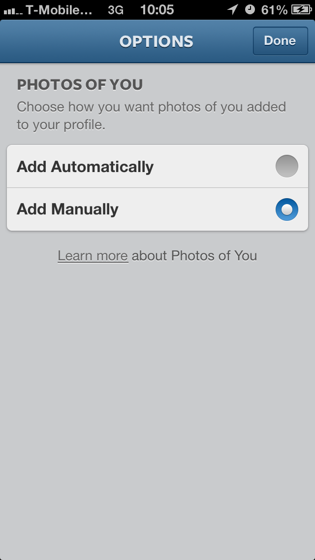 What happens if you choose to add the tagged photos automatically? Well, in addition to the usual notification, the photo will be automatically visible in your profile’s Photos of You page. From here you still have the choice to remove yourself and/or hide the photo from your profile.